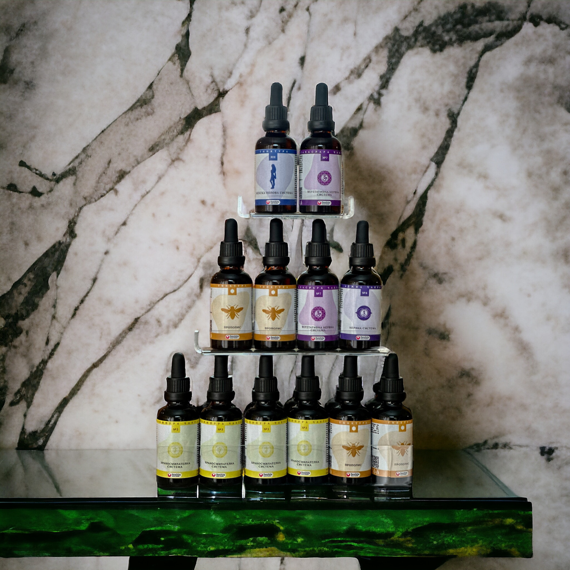 Специално подбрани комбинации от различни билки за 7-те основни системи в организма представляват натурални водно-етанолови екстракти (тинктури), които имат благотворно влияние върху човешкия организъм. Уникалните комбинации и доказаният с клинични изследвания ефект на билковите тинктури дават възможност за широк спектър на лечебна и профилактична дейност. Продуктите могат да се употребяват както самостоятелно, така и в съчетание с други лекарствени средства и се отличават с липса на токсичност и на странични реакции.
